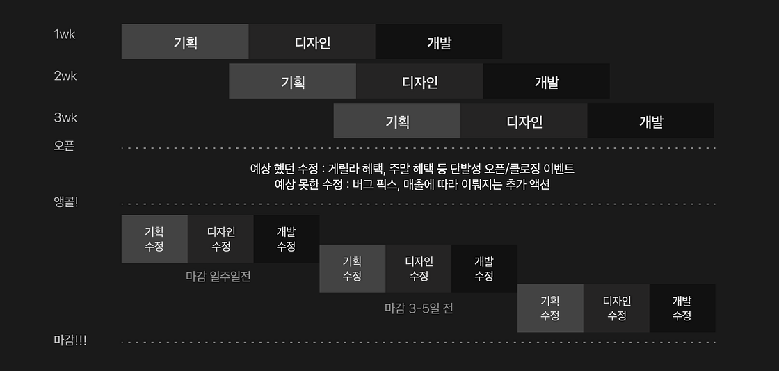 또한 간단한 수정사항에도 기획, 디자인, 개발, QA 프로세스를 거치며 여러 이해관계자 사이의 커뮤니케이션 코스트가 점점 가중되고 있었습니다.