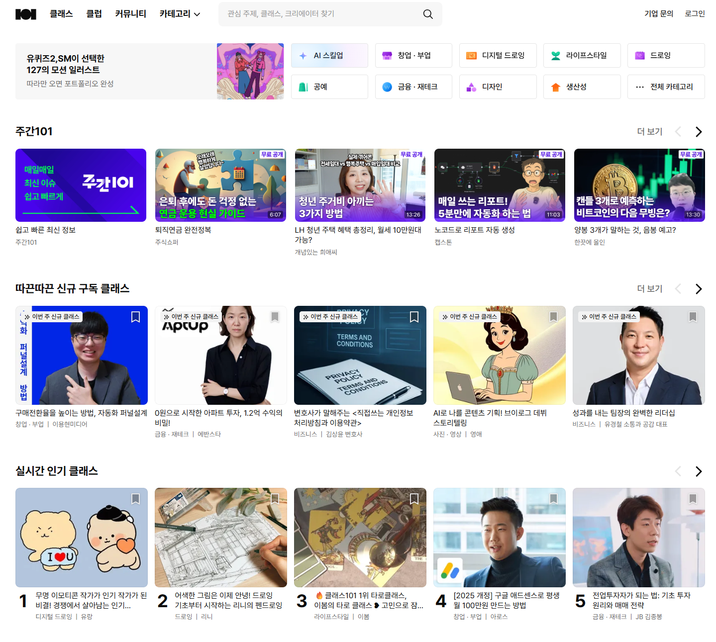 클래스101은 이러한 취지에 부합하는 플랫폼으로서, 디지털·직무·취미 등 다양한 분야에서 폭넓은 강의를 제공하며 자율적인 학습 활동에 참여하는 사람들의 풍부한 학습 여정을 지원하고 있습니다.