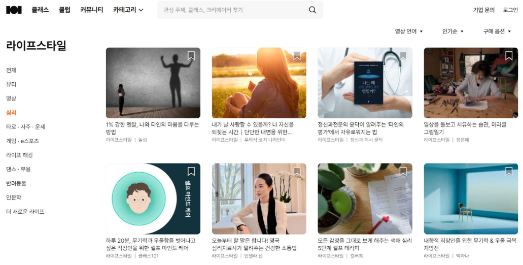 클래스101은 라이프스타일과 관련된 여러 클래스를 운영 중입니다.