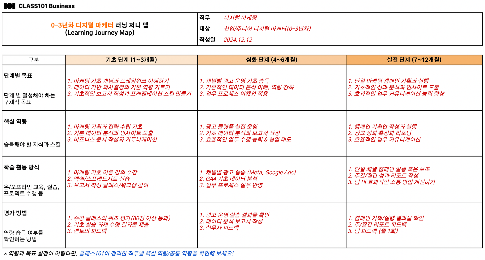 일회성, 단발성 교육과 같은 한계를 극복하기 위해서는 장기적인 관점의 학습 여정, 즉 '러닝 저니(Learning Journey)'가 필요합니다. 앞서 말씀드렸듯 러닝 저니는 단순한 일회성 지식 전달이 아닌, 구성원의 실질적인 역량 향상을 목표로 하는 체계적인 학습 여정을 의미해요.