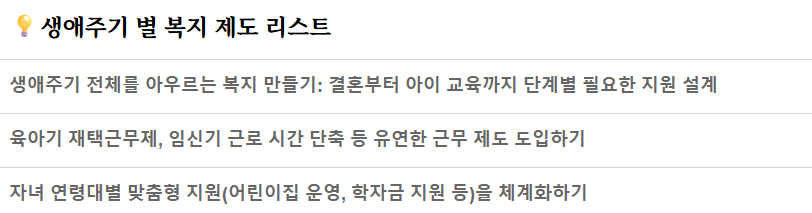 포스코는 2018년부터 결혼-임신-출산-육아-교육을 아우르는 30가지의 생애주기별 맞춤형 복리후생 제도를 도입했습니다. 출산 장려금(첫째 300만 원, 둘째 이후 500만 원), 아이 첫 만남 선물(50만 원 상당 상품권) 등 다양한 혜택을 제공하고 있죠.