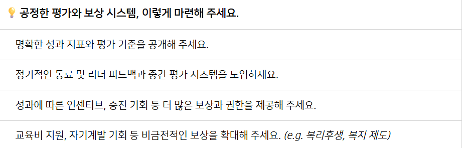 (1) 공정한 평가 제도와 보상 시스템을 마련해 보세요.