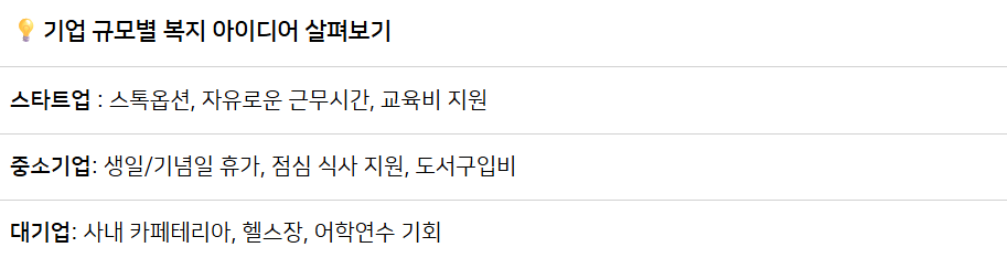 하지만 모든 기업이 세일즈포스처럼 할 수는 없죠. 중요한 건 우리 회사 상황에 맞는 보상 제도를 찾는 것입니다. 금전적 보상이 어렵다면 비금전적 보상, 즉 복지 제도를 활용해보세요.