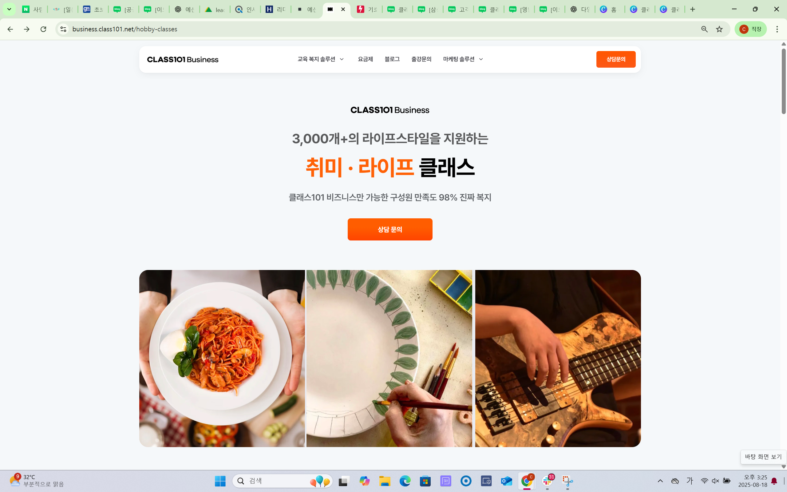 이미 삼성카드, SK텔레콤, 현대그린푸드 등 1,000개 이상의 기업이 클래스를 도입해 임직원 만족도를 높이고 있으며, 그 효과가 실제로 검증되었습니다. 만약 직원 교육·복지에 한정된 HRD 예산을 효율적으로 투자하고 싶다면, 클래스101 비즈니스로 문의하세요.