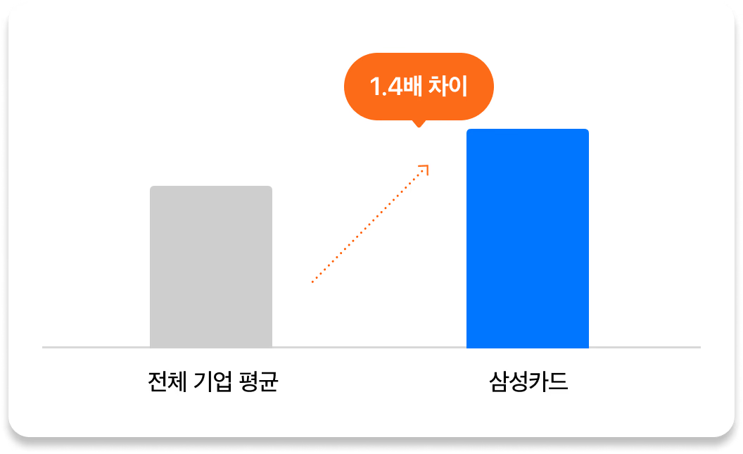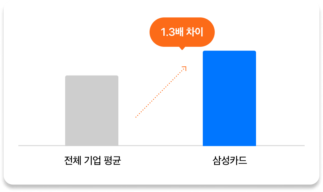 자기주도·동료학습 문화 활성화를 위한 다양한 이벤트를 진행한 결과 삼성카드는 클래스101 Business를 사용하는 전체 기업 평균 대비 더 높은 성과를 보여주었습니다.