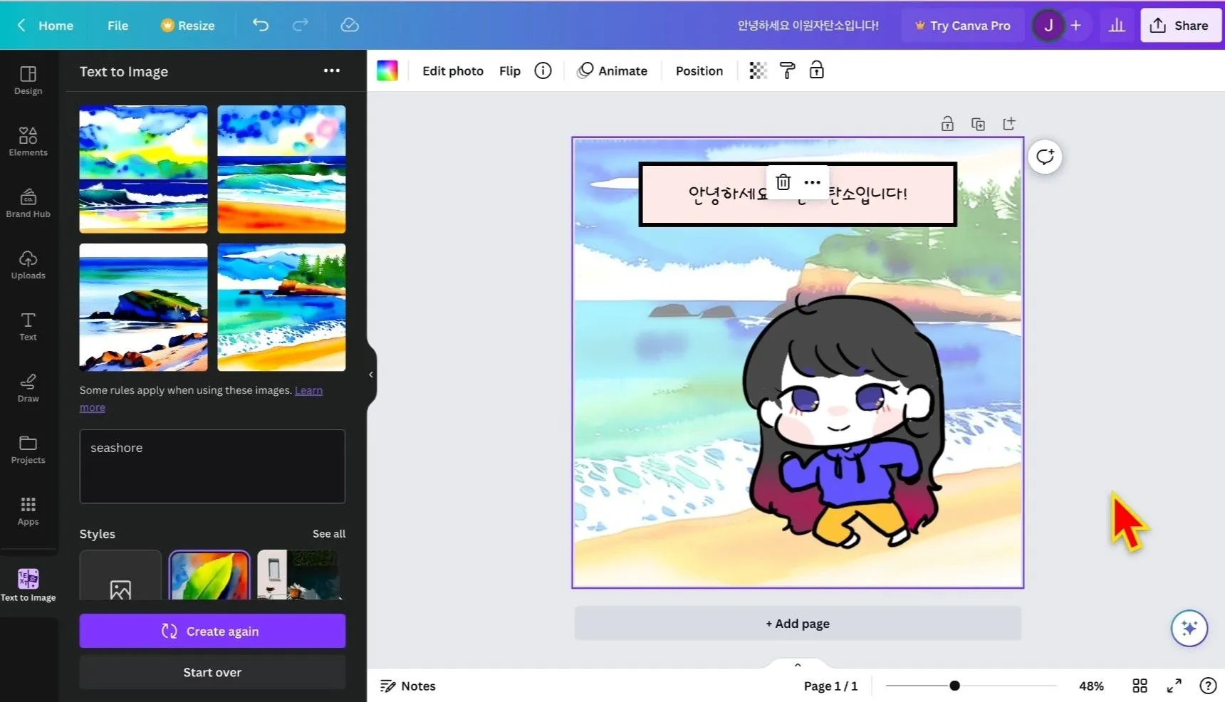 캔바의 Text to Image AI 기능을 활용하면,