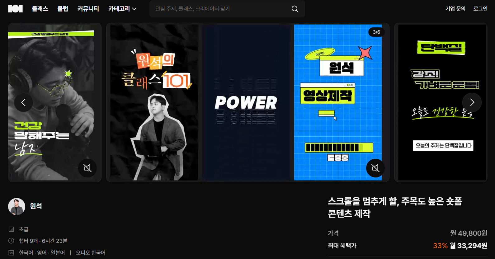 마케팅 클래스 1. '스크롤을 멈추게 할, 주목도 높은 숏폼 콘텐츠 제작'