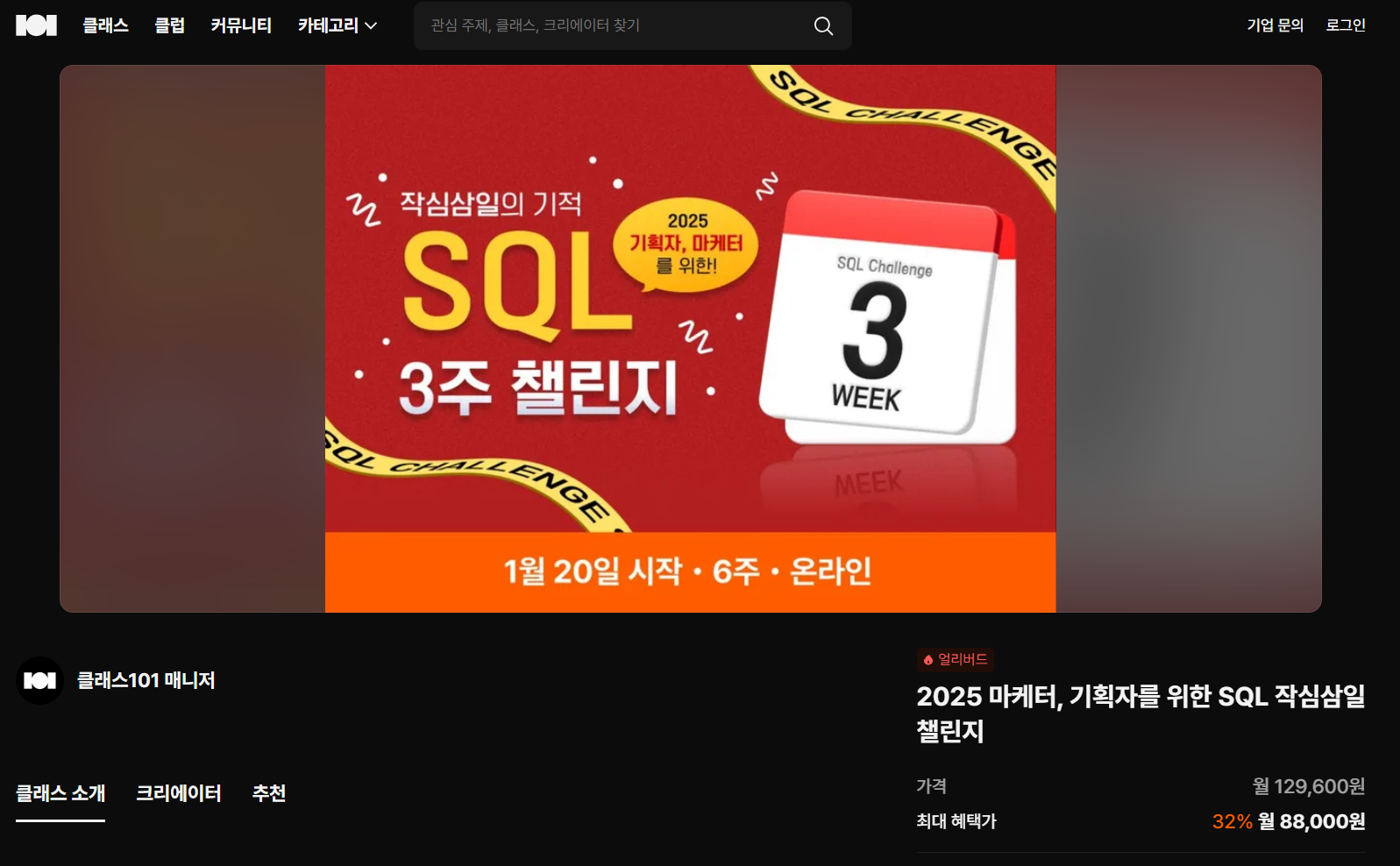 마케팅 클래스 3. '마케터와 기획자를 위한 SQL 3주 챌린지'