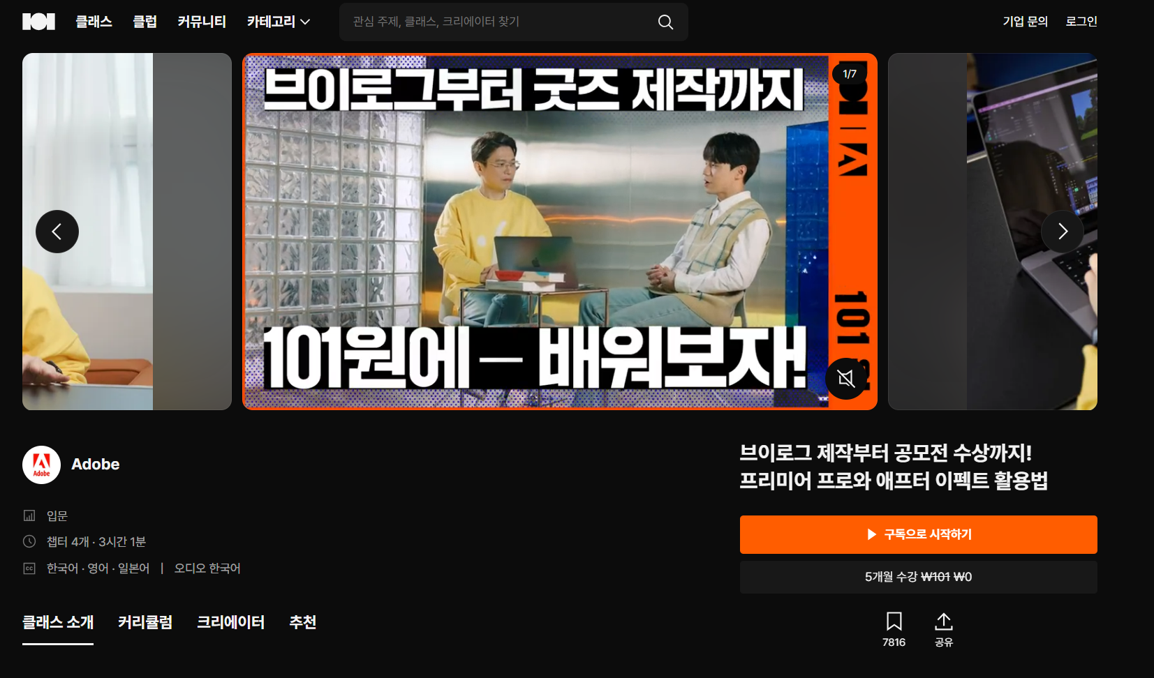 마케팅 클래스 2. '프리미어 프로와 이펙트 활용법'