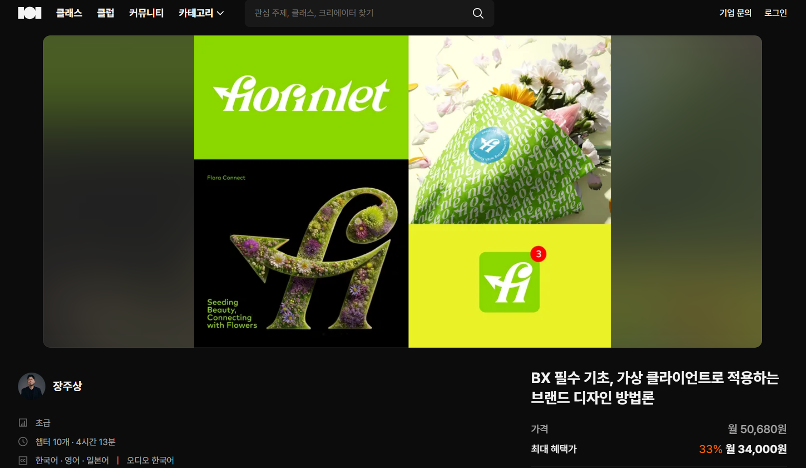 디자인 클래스 1. 'BX 필수 기초, 가상 클라이언트로 적용하는 브랜드 디자인 방법론'