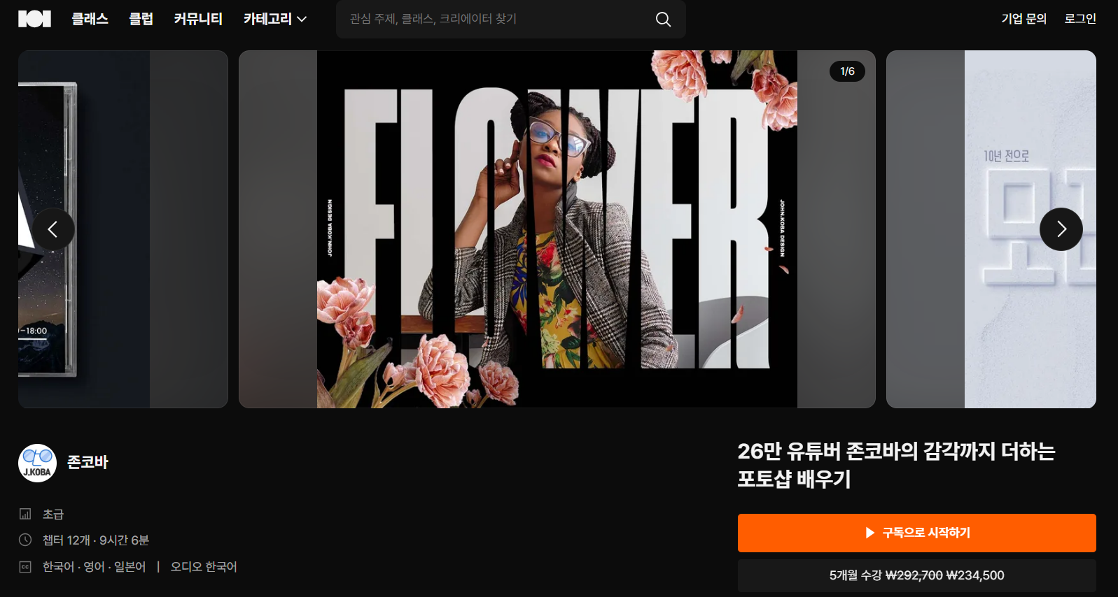 디자인 클래스 2. '26만 유튜버 존코바의 감각까지 더하는 포토샵 배우기'