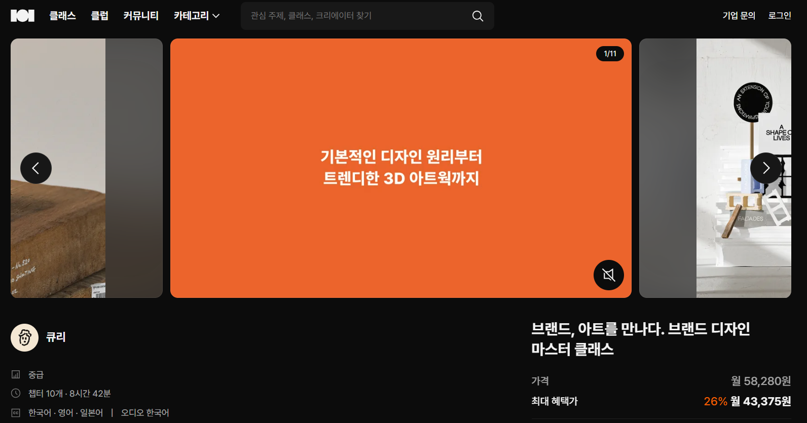 각 기업의 상황과 규모에 맞는 최적의 교육 솔루션을 제공하는 클래스101 비즈니스. 개별 구매부터 기업 구독까지, 구성원들의 성장을 위한 다양한 선택지를 만나보세요! 업계를 선도하는 전문가들의 노하우가 담긴 콘텐츠로 구성원들의 역량 강화를 시작할 수 있습니다. 자유롭고 효율적인 기업 교육, 구성원 업스킬링을 위한 모든 순간에 클래스101이 함께 하겠습니다.🍀