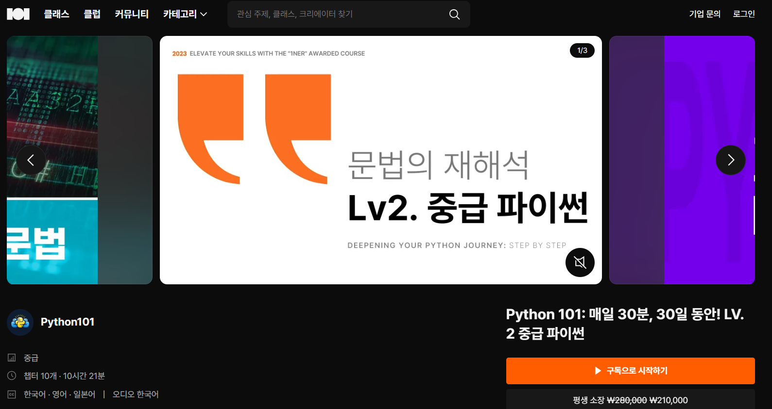 개발 클래스 2. 'Pyhton 101 : 매일 30분, 30일 동안! LV.2 중급 파이썬'