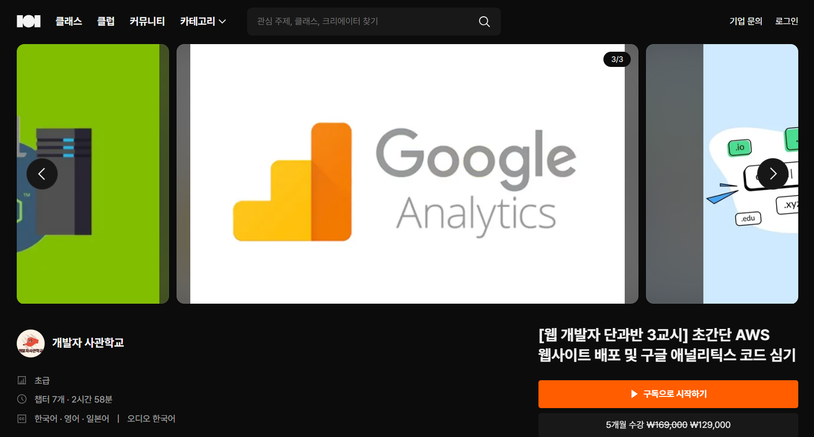 개발 클래스 3. '초간단 AWS 웹사이트 배포 및 구글 애널리틱스 코드 심기'