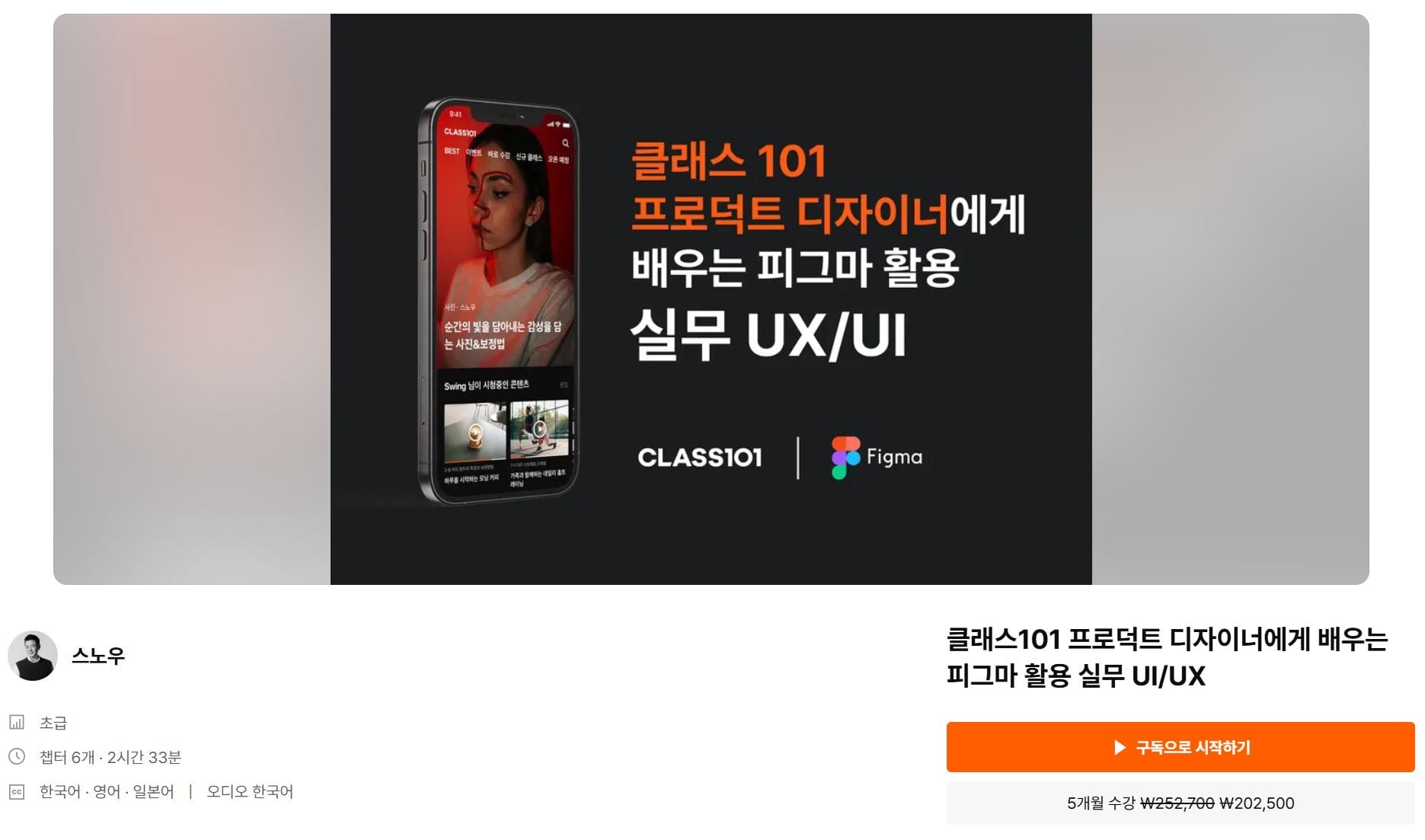 🎨디자인 직무 강의 추천 : 클래스101 프로덕트 디자이너에게 배우는 피그마 활용 실무 UI/UX