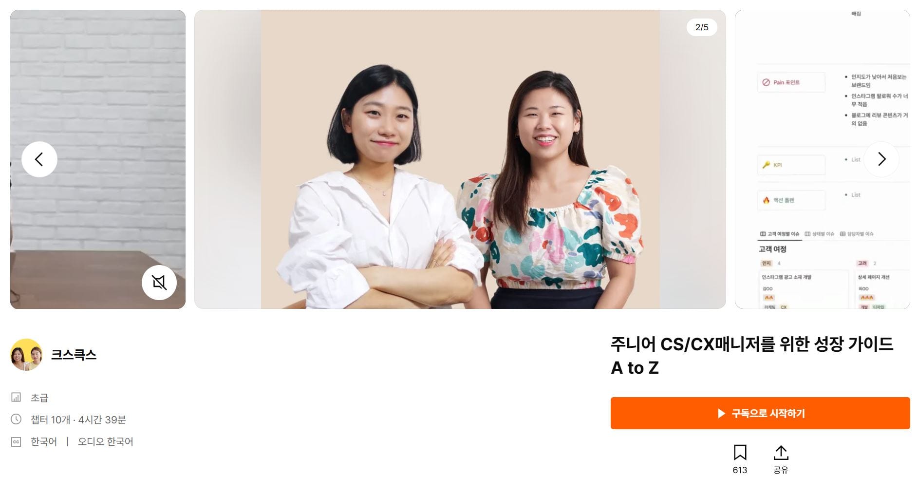🧑🦰CS/CX 매니저 직무 강의 추천 : 주니어 CS/CX 매니저를 위한 성장 가이드 A to Z